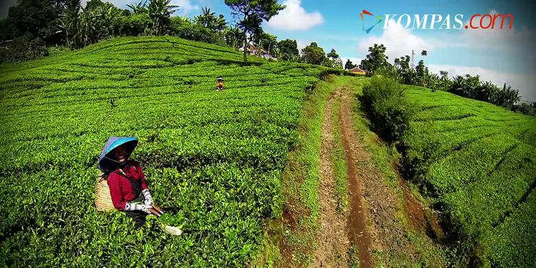 Kebun Teh Ciater, Jawa Barat, direkam dari udara menggunakan drone.